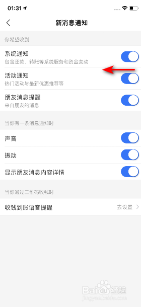 然后将活动通知的滑动按钮标的目的左滑动封闭即可。