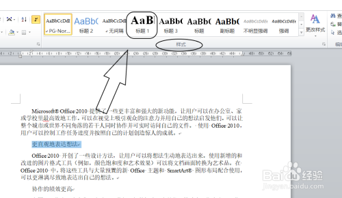 4.在“样式”功能中找到“题目一”样式。