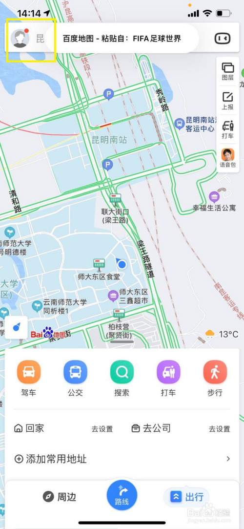 进入到百度地图的本家儿页面后,我们进入左上角的小我中间。