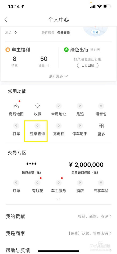在小我中间的本家儿页面中,我们点击进入违章查询。