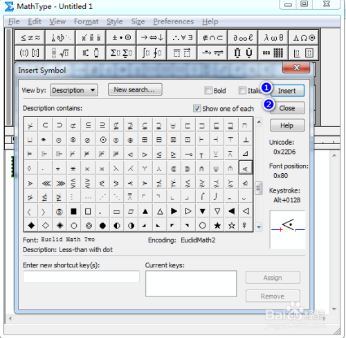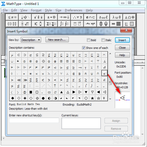 在符号面板中,找到并点中加点的小于号,具体如图所示: