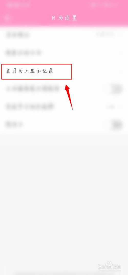 之后,我们我们在【日历设置】页面中点击【在月历上显示记实】。