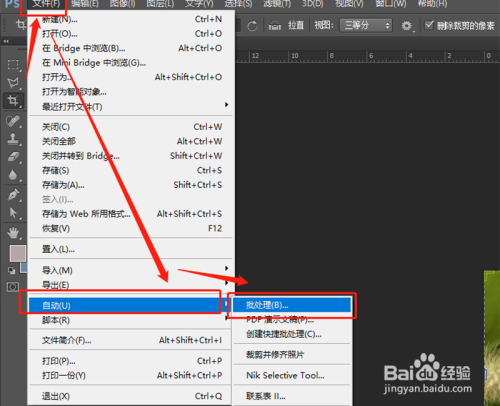 这些都操作好后,就可以执行批量操作,选择软件的“文件”,选择下拉菜单中的“主动”,在主动中选择“批处置”。