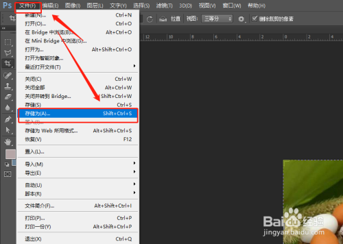 另存为图片的位置,选择菜单栏的“文件”,鄙人拉菜单栏中选择“存储为”。