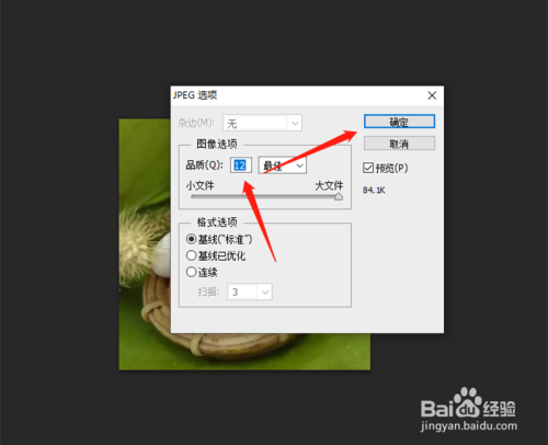 设置图片的保留质量,在8到12之间都可以。