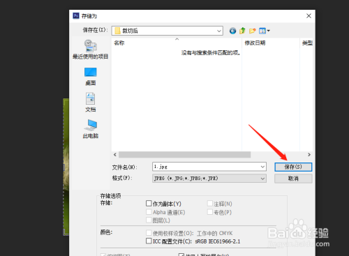 在弹出的对话框中设置图片的格局和存储位置,设置完当作点击储存。