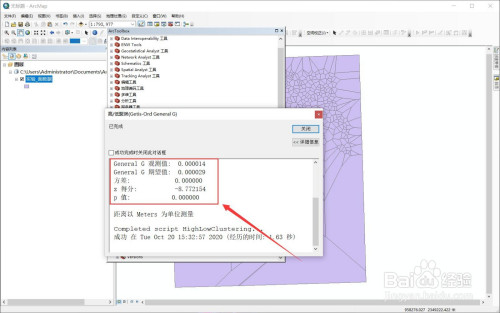 选择【空间统计东西】-【阐发模式】-【凹凸聚类】。