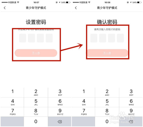 3.点击下一步,设置上两一致的四位数密码即可。