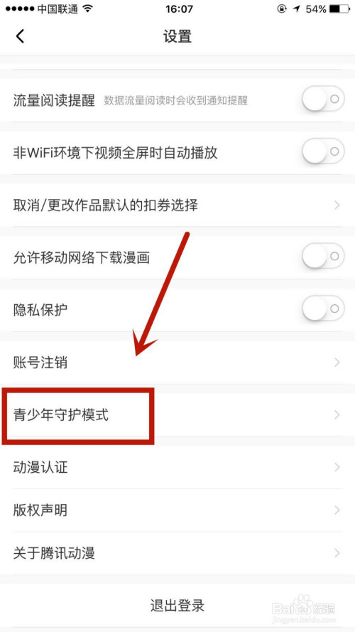 在设置页面,点击进入青少年守护模式选项。