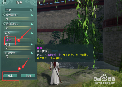 选中搜刮出来的【夺命】称号,点击下方的【确定】按钮。