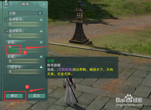 选中搜刮出来的【云游】称号,点击下方的【确定】按钮。