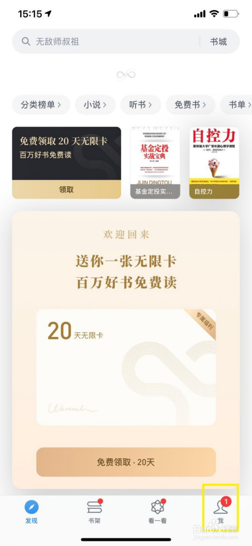 进入到微信念书的本家儿页面后,我们点击进入右下角我的选项。