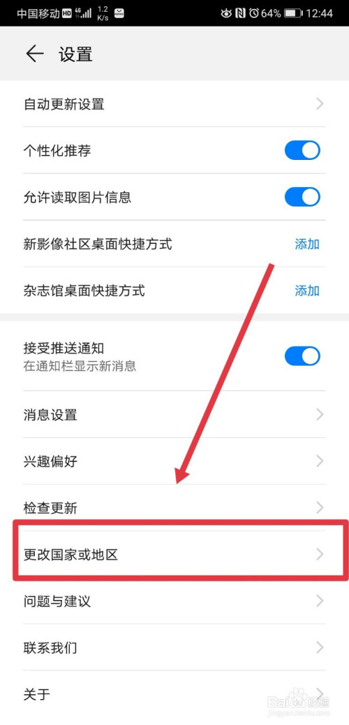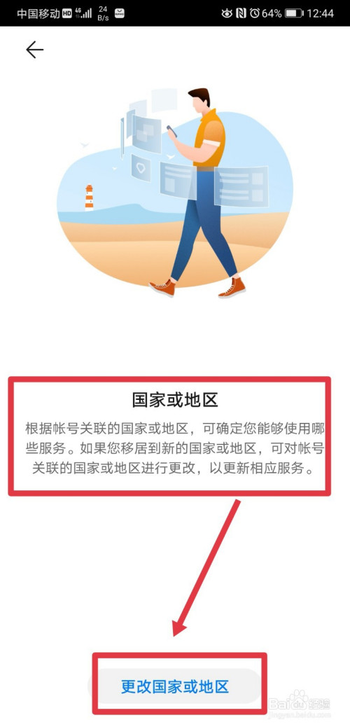 打开“更改国度或地域”功能后,首先阅读相关条条目,然后再点击“更改国度或地域”按钮,进入下一步;