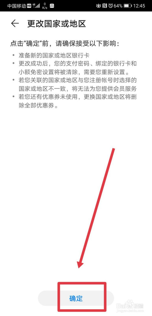 点击“更改国度或地域”按钮后,会有提醒信息,提醒会造当作哪些影响,我们在确认过信息后,再点击确定按钮进入下一步;