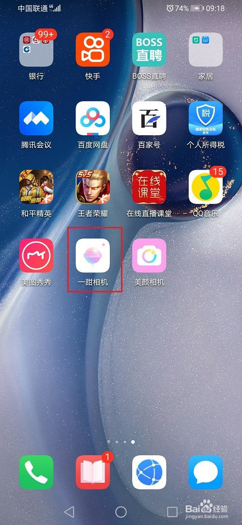第一步打开我们的手机,点击一甜相机