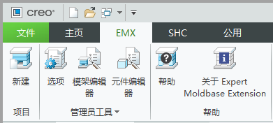 切换到快捷体例,这里无需任何设置,因为emx不是零丁启动,是Creo启动后利用的。