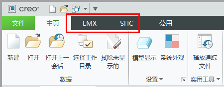 安装设置完当作后,启动creo7.0,界面就有emx的功能选项卡了!
