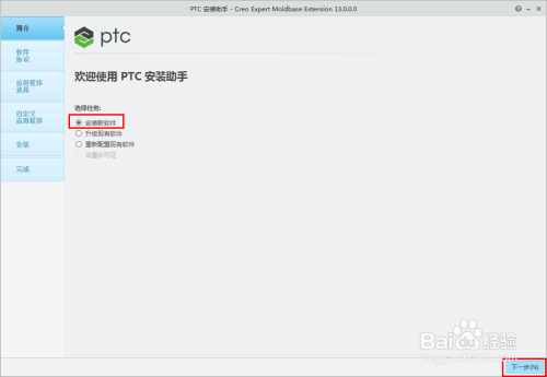在安装助手对话框中选择“安装新软件”,点击“下一步”。