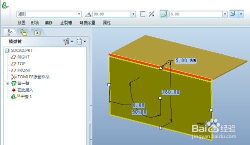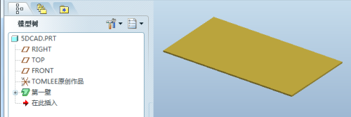 打开现有的proe钣金三维模子,模子已经有第一面。
