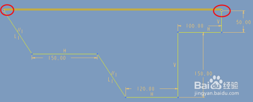 从边两头的参考点起头绘制草图,完当作尺寸界说。