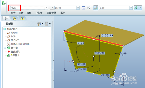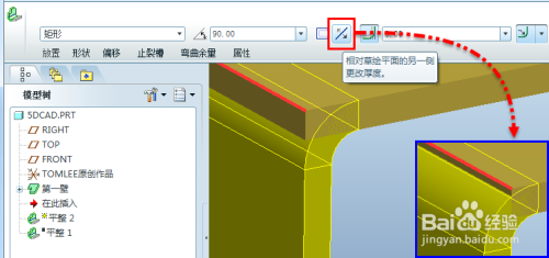 所以平整壁,这样的附加壁都是在已有壁后才可以利用的建立体例,此刻我们点击平整壁图标,起头建立平整壁特征。