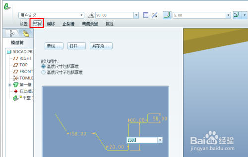 有多种类型可选,好比默认使矩形,还可以选梯形、L形、T形和用户界说(就是本身草绘外形)。