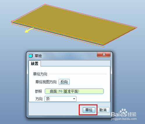 选择用户界说后,弹出草绘界说对话框,可以接管默认,直接点击“草绘”进入。