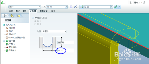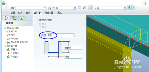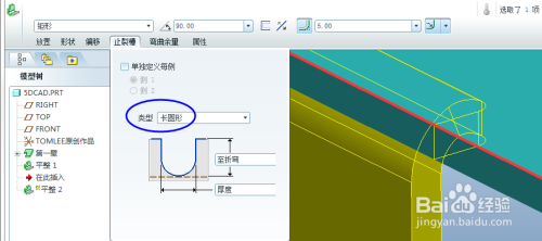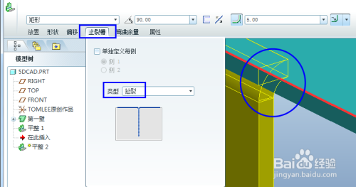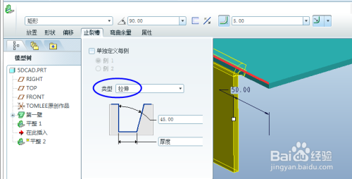 设置好止裂槽今后,我们打勾完当作平整壁的特征建立。