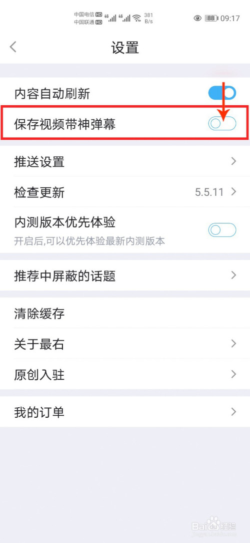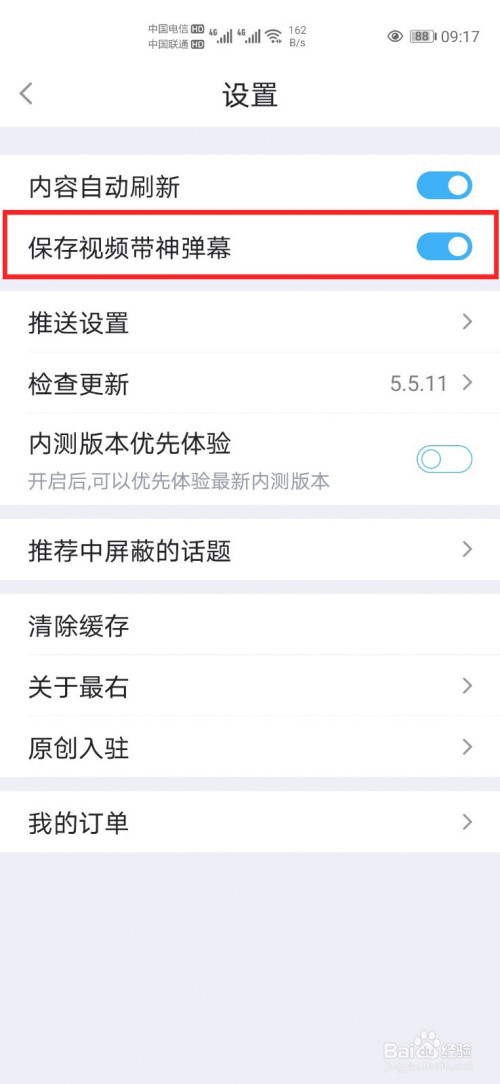 4、找到【保留视频带神弹幕】,默认是开启状况。