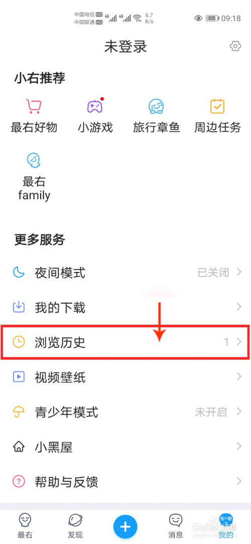 打开小我中间后点击下方【浏览汗青】。