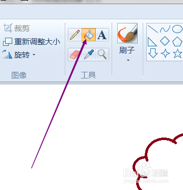 移动鼠标到云朵内部,当鼠标酿成填充的涂料桶外形时单击鼠标,这样填充的云朵就画好了。