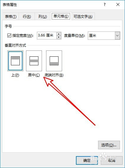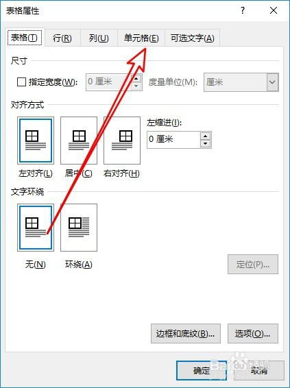 然后在打开的表格属性窗口,点击单位格的选项卡。