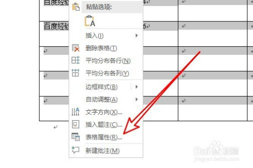 右键点击表格中的数据,选择表格属性的菜单项。
