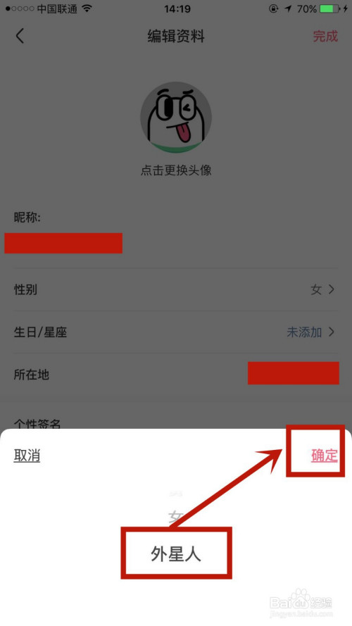 当作功操作后,即可发现本身的性别被设置为外星人。