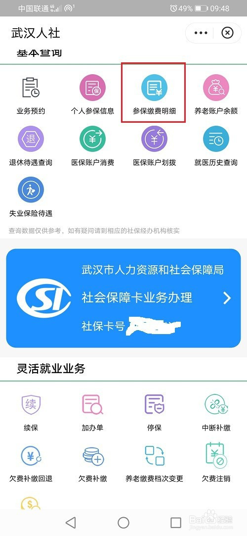 第五步进去之后,点击参保缴费明细,可以看到社保缴纳明细,只要找到工作缴纳社保,掉业金就会主动打消领取,我们也可以直接去社保局里面打消领取,按照需要利用