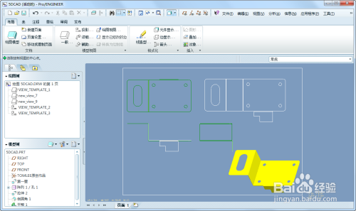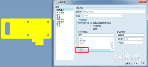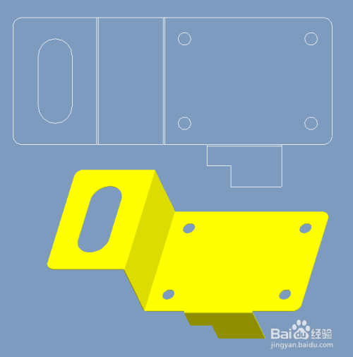 双击TOP视图,获得俯视图结果。这个视图选摘要看钣金件设计时,哪个视图是睁开图的俯视偏向。