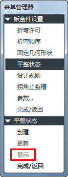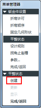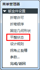 钣金设置菜单中我们选择平整状况。