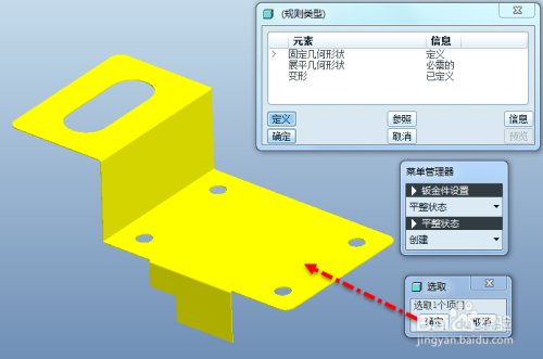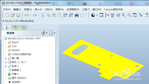 可以直接默认打勾完当作平整实例建立,也可以本身输入需要的名称再确认,默认proe会在钣金文件名后增添“_FLAT1”作为平整实例的默认名称。