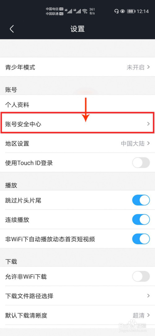4、点击【账号平安中间】。