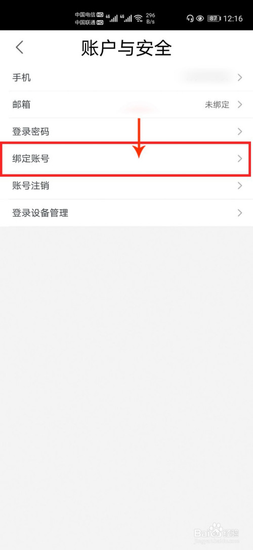 5、点击【绑定账号】。