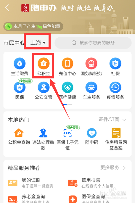 选择上海市,点击公积金。