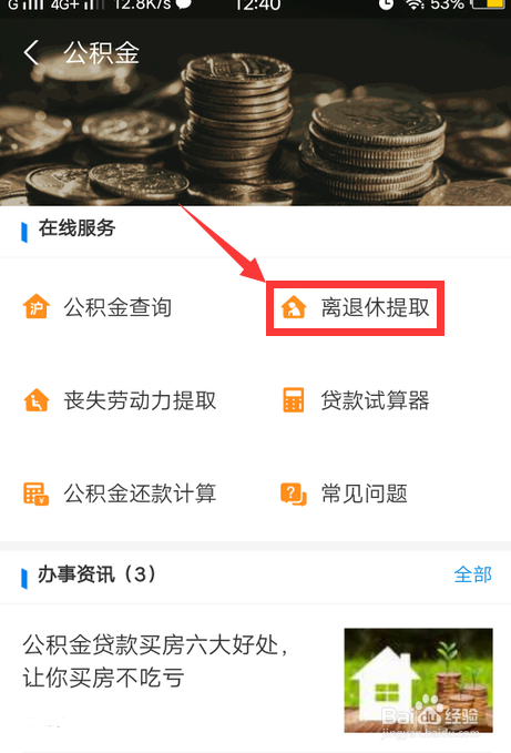 进入后,点击离退休提取即可。