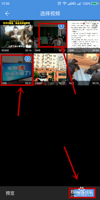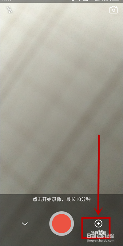要上传的视频可以单击【录制】按钮进行现场录制,也可以单击右下角【选择视频】在手机长进行选择,这里单击【选择视频】