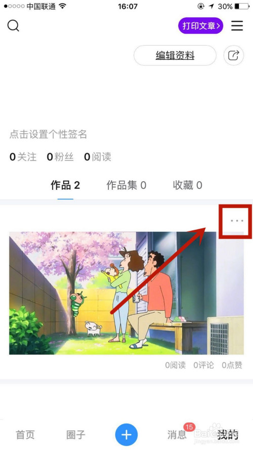 在我的页面,找到需要操作的文章,点击文章右上角的 ... 小标。