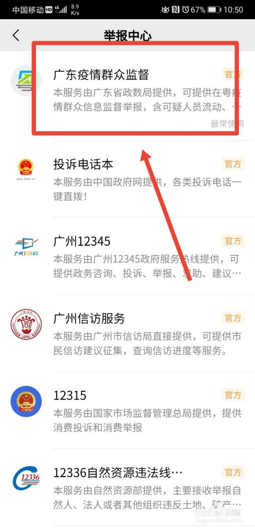 在举报中间页面,继续点击进入疫情群众监视功能;