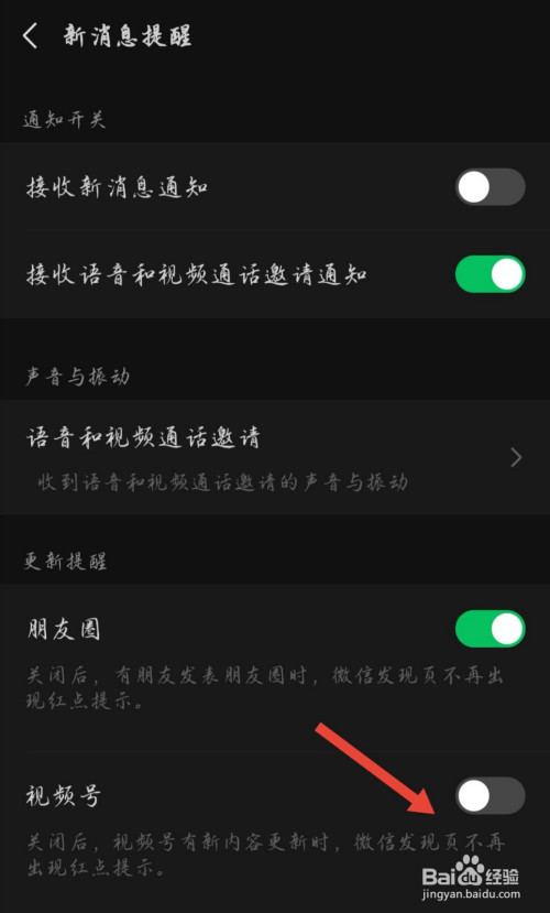 在动静提醒界面,点击封闭视频号的动静提醒功能。