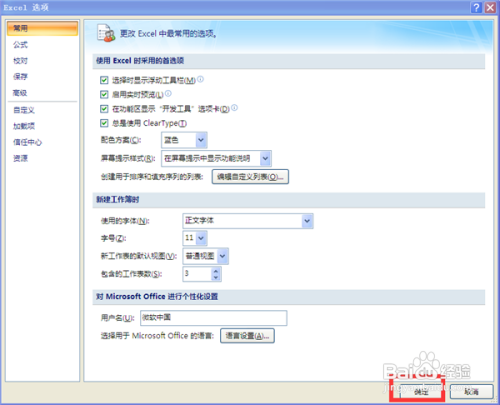 点击最下面的【确定】按钮,【开辟东西】呈现在Office菜单栏