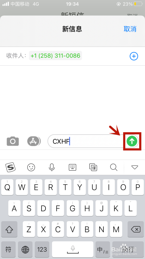 输入收信人号码以及信息内容。然后点击如下图所示的切换按钮。