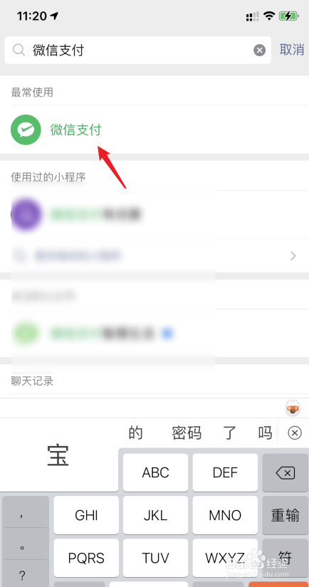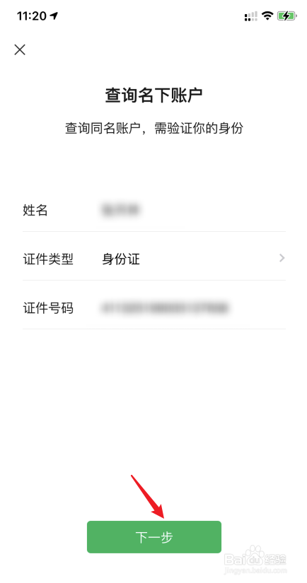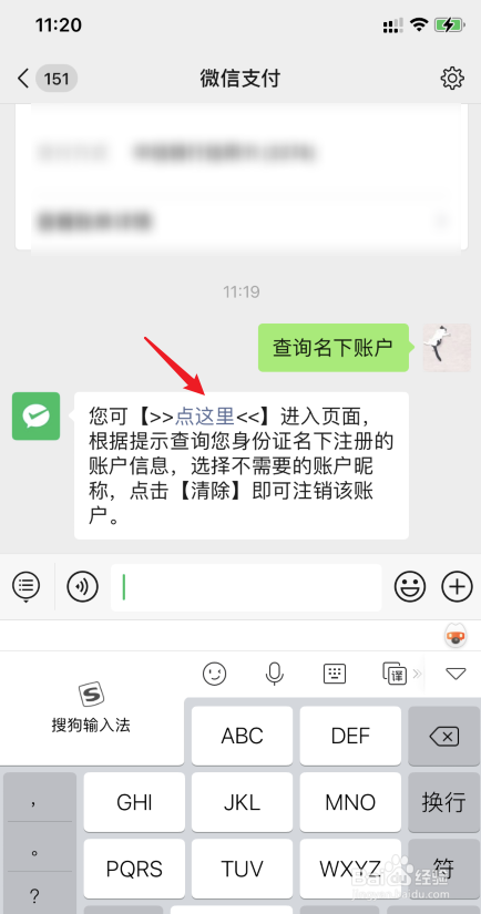 之后,在微信支付内,发送查询名下账户并点击下方的进口。