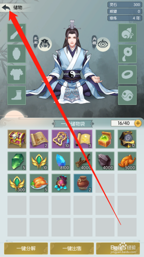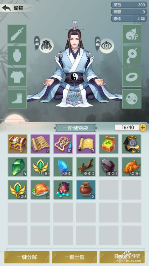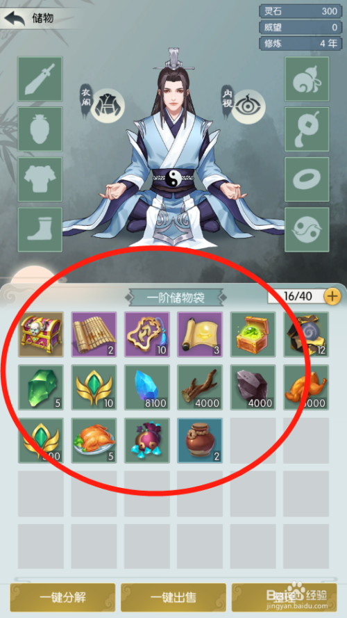 可以看到当前的储物道具列表